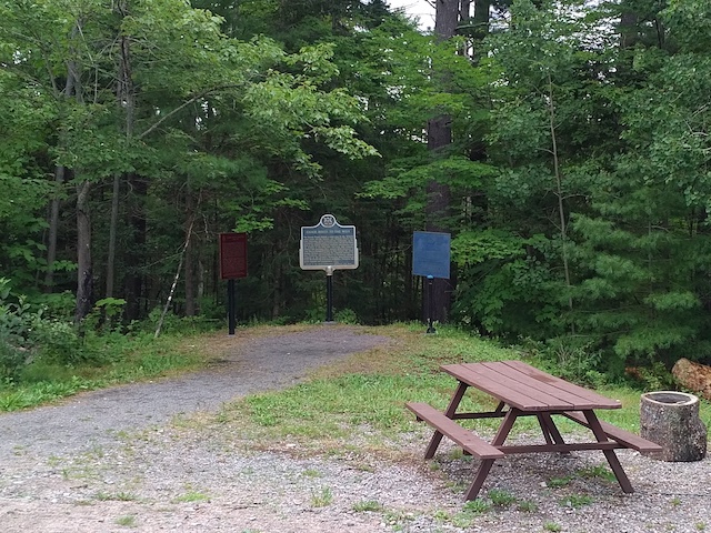 La plaque historique est située dans le parc provincial de la Rivière des Français, près de la route 69, aux abords sud du pont de la Rivière des Français.